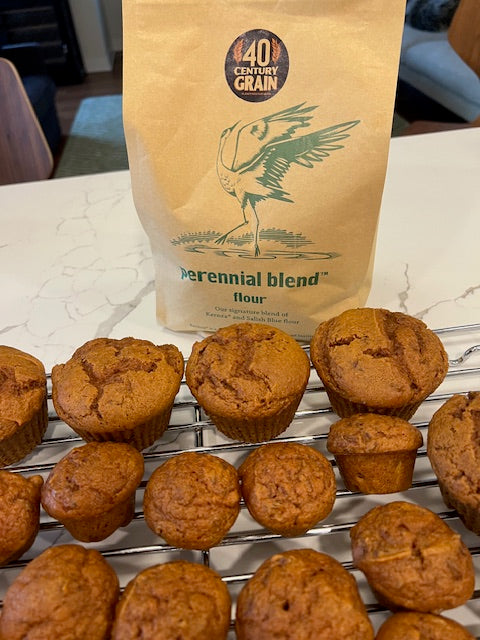 Made with Perennial Blend™ flour and optional cooked Kernza® grains for extra texture and nutrition. The brown butter adds incredible depth while warm spices make these perfect for fall mornings.